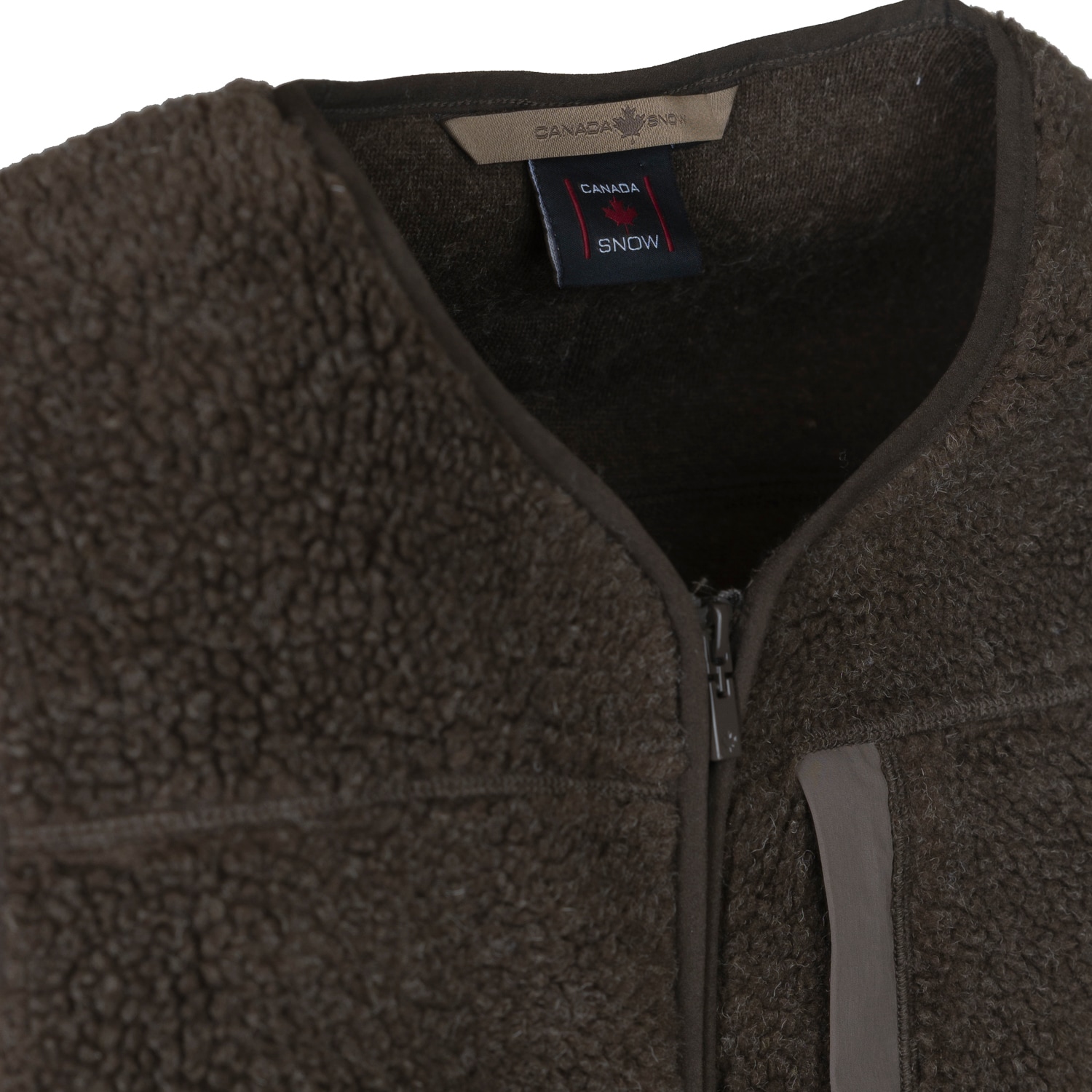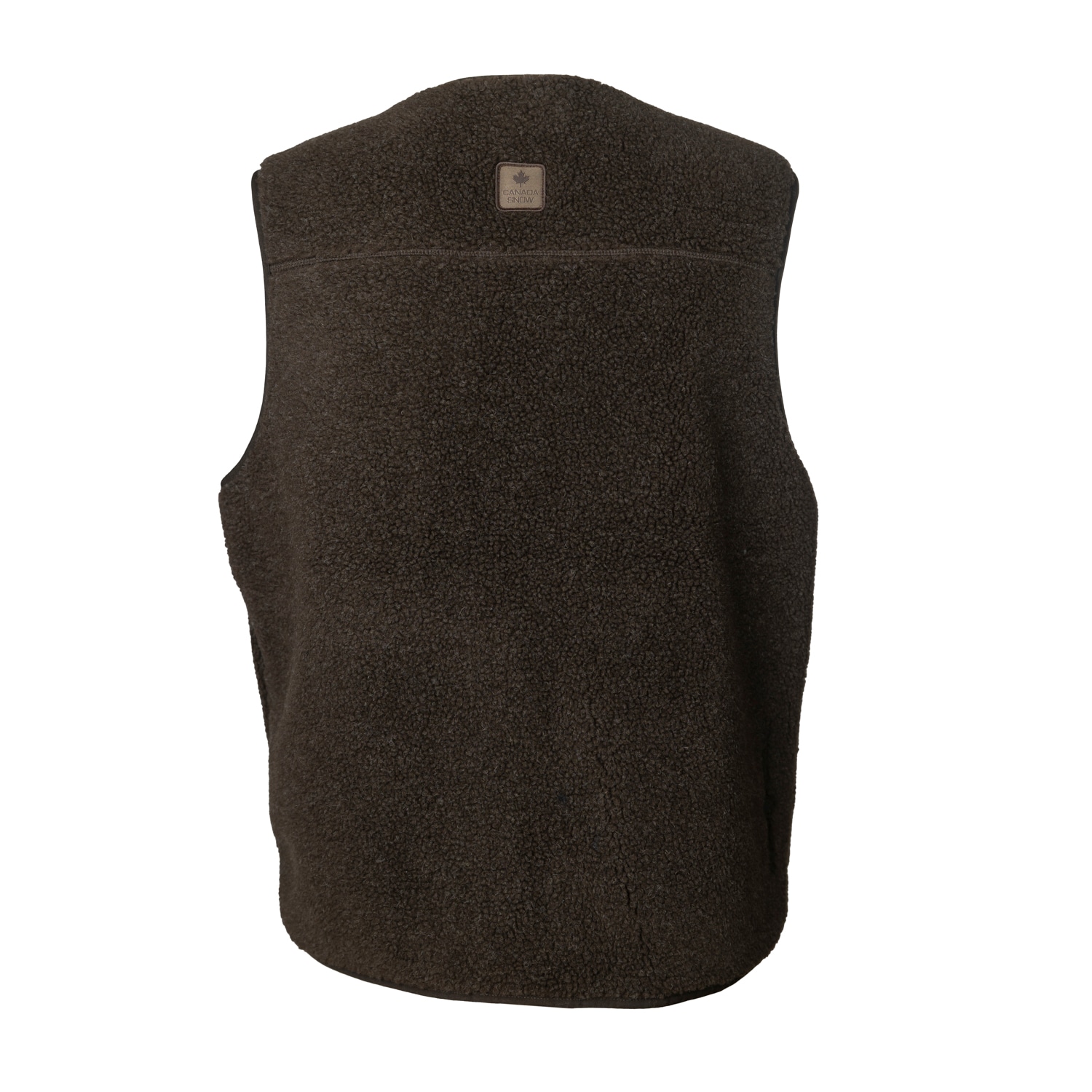 Bianca - a warm vest in a comfortable and soft wool blend. The brown outer material is made of 22% wool, 15% acrylic, and 63% polyester, designed with a two-way zipper, two side pockets, and a large chest pocket. The vest has beautiful embroidered logos on both the front and back. Bianca is the perfect mid-layer for fall and winter, whether you are out on the city streets or hiking the trails.