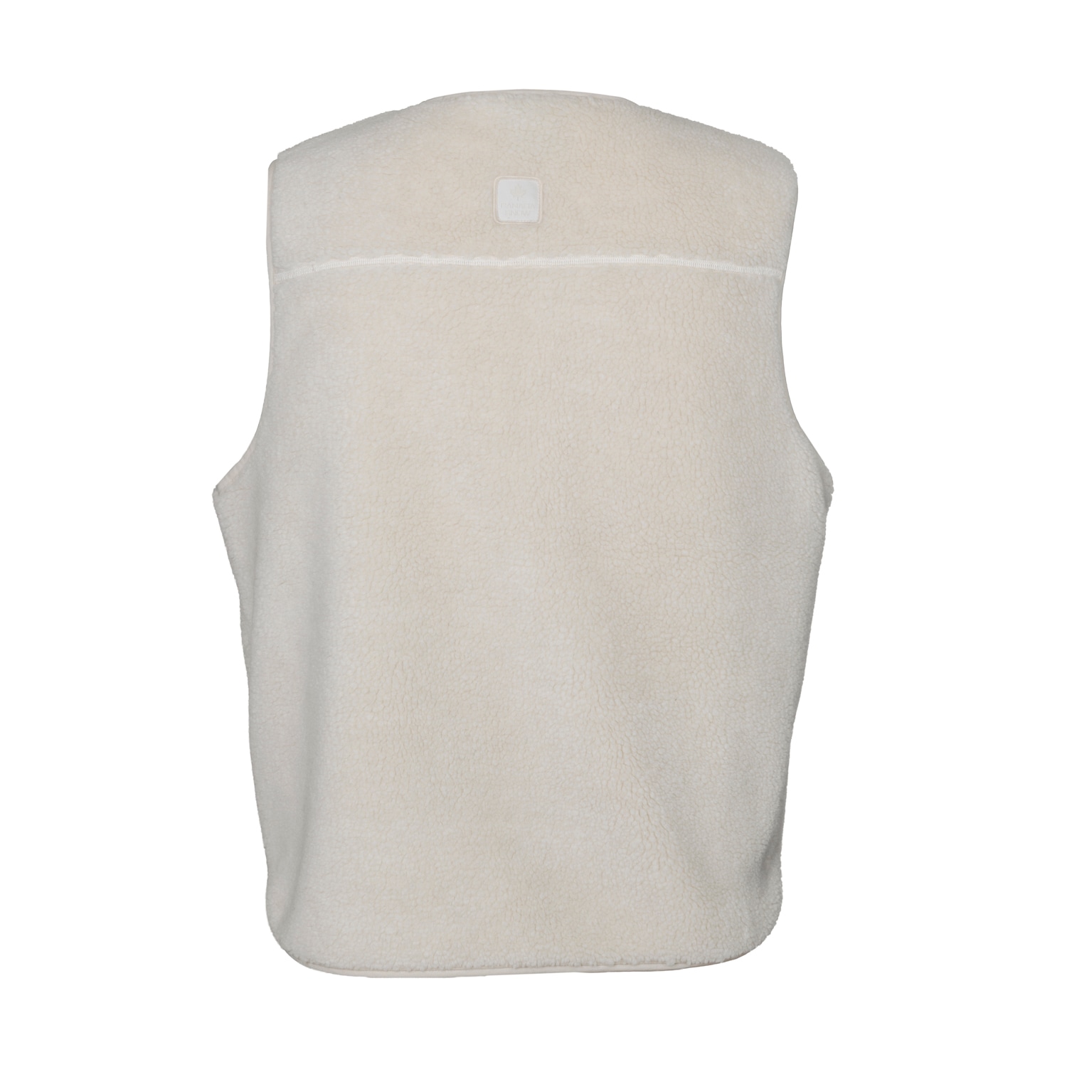 Bianca - a warm vest in a comfortable and soft wool blend. The white outer material is made of 22% wool, 15% acrylic, and 63% polyester, designed with a two-way zipper, two side pockets, and a large chest pocket. The vest has beautiful embroidered logos on both the front and back. Bianca is the perfect mid-layer for fall and winter, whether you are out on the city streets or hiking the trails.