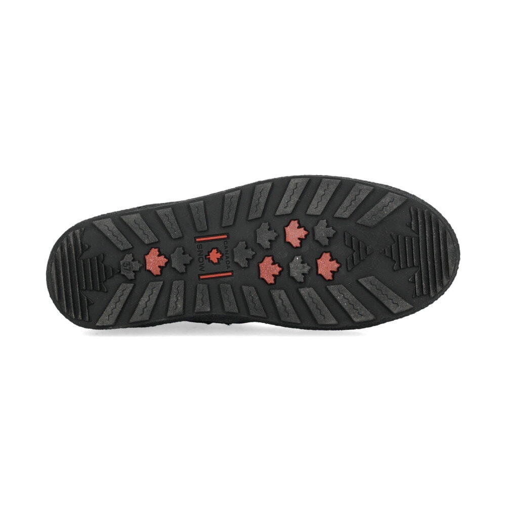 Quebec Grip, curlingkängor från Canada Snow. Ovandel i svart mocka med ett Sympatex-membran som håller fötterna torra. Behandlad mocka ger skon en vatten- och smutsavvisande yta. På insidan av kängan finns en YKK-dragkedja som gör det enkelt att ta på sig skon. Fodret inuti bootsen och innersulan är av äkta fårskinn. Yttersulan är i en gummiblandning med partier på undersidan som ger extra bra grepp.